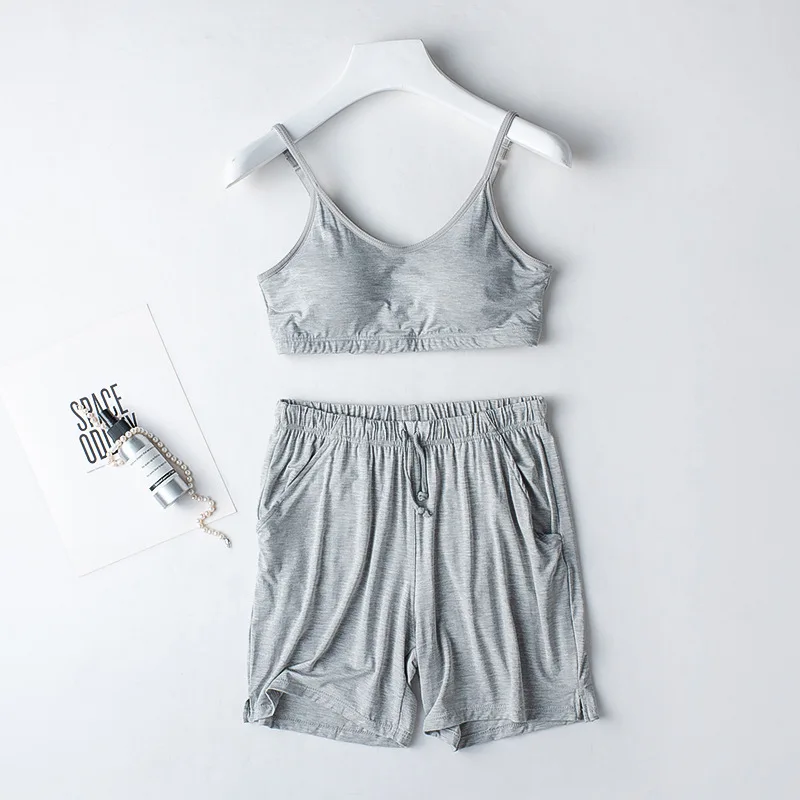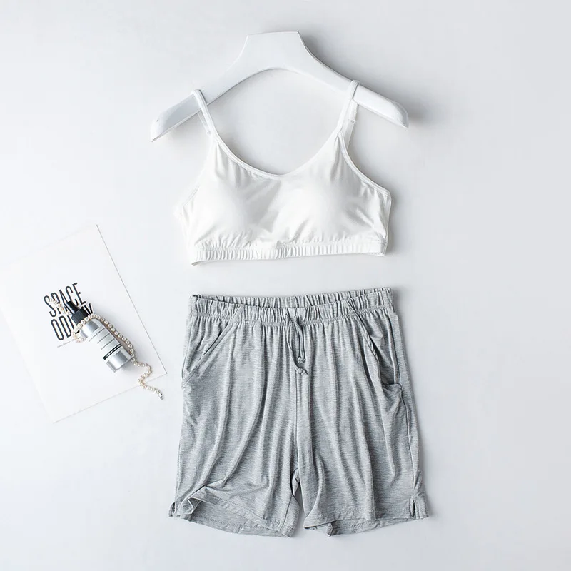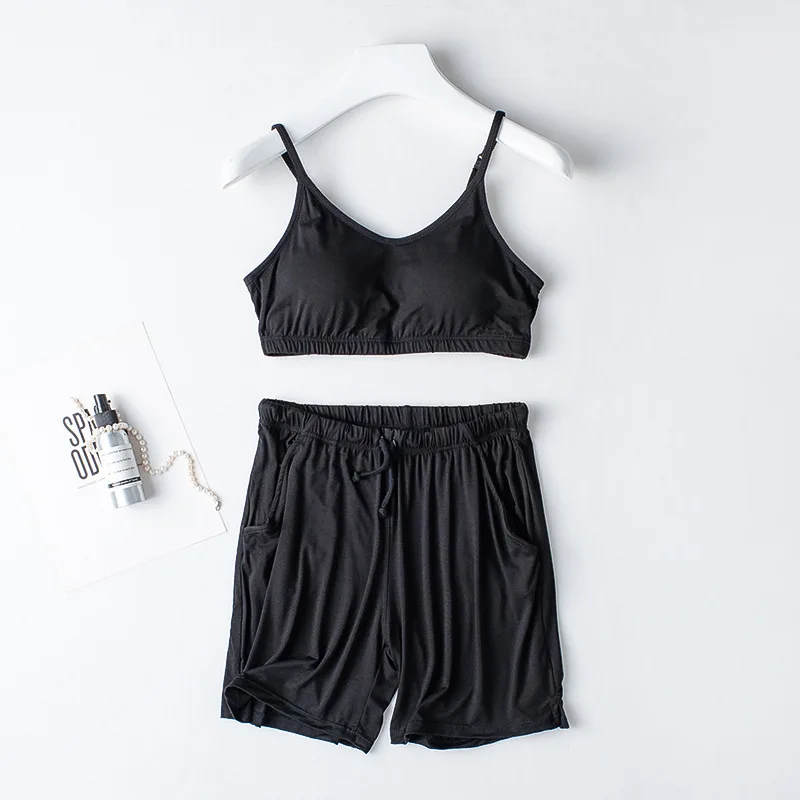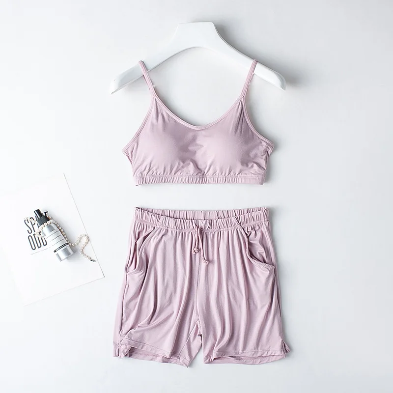 Spring/Summer Ladies Pajamas Sling + Shorts Modal With Chest Pad Solid Color Homewear Set pajamas sleepwear lingerie